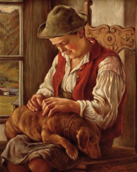 Junge mit Dackel