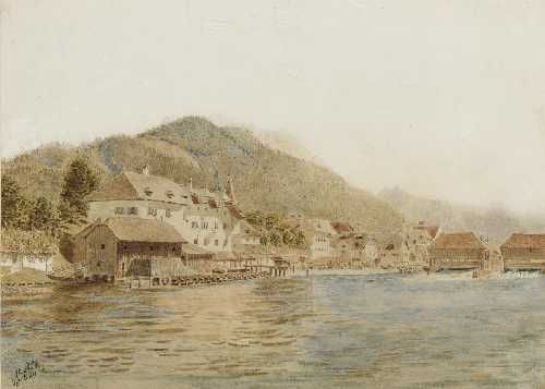 | Gmunden am Traunsee - Blick über die Traun auf die Kurzmühle. | |