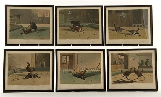 | SET OF SIX WORKS: COCK FIGHTING SCENES; SET TOO; FIGHT; THROAT; KNOCK DOWN; RECOVERY; and DEATH | |