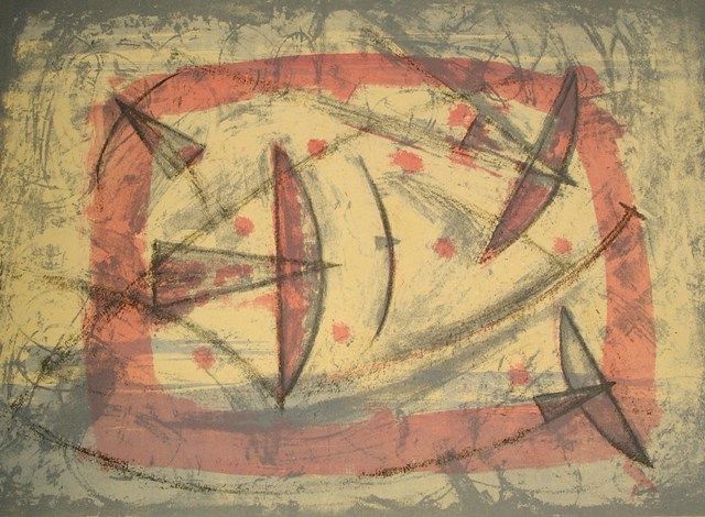 Poesia Del Vuelo (Poetry of Flight), an abstract of pinks and blues with geometric forms