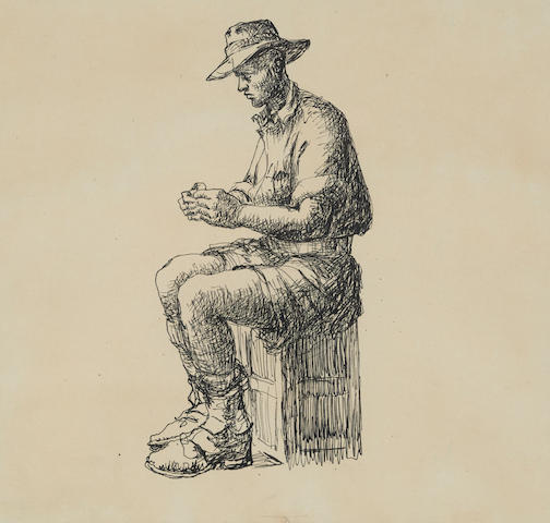 Soldier rolling a cigarette (sheet size)