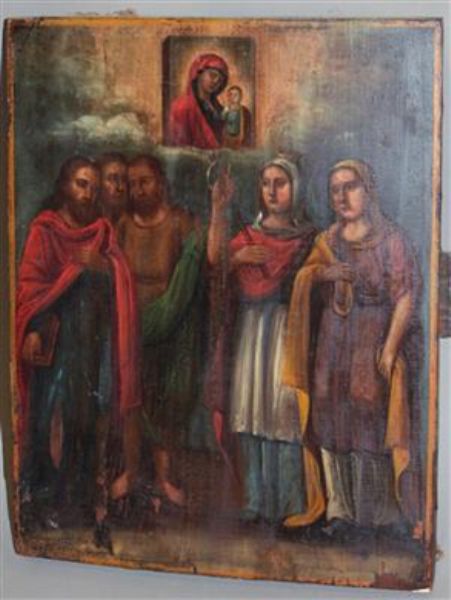 Heiligendarstellungen, über Ihnen Madonna mit Kind