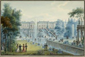 Blick auf Schloss Peterhof bei St. Petersburg