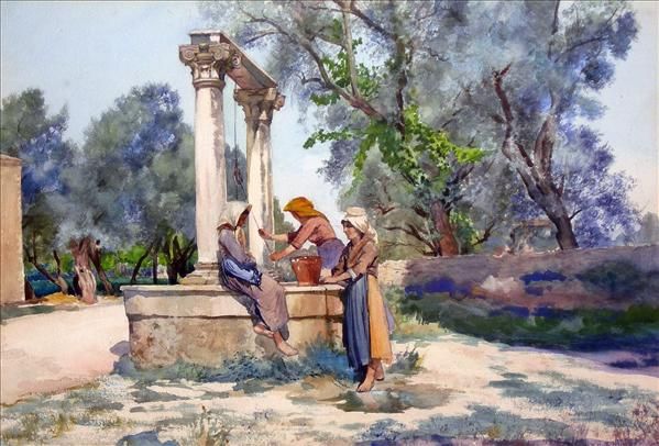 The Gossips, figures at the village well