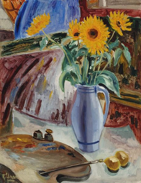 Still life with sunflowers and painter's palette