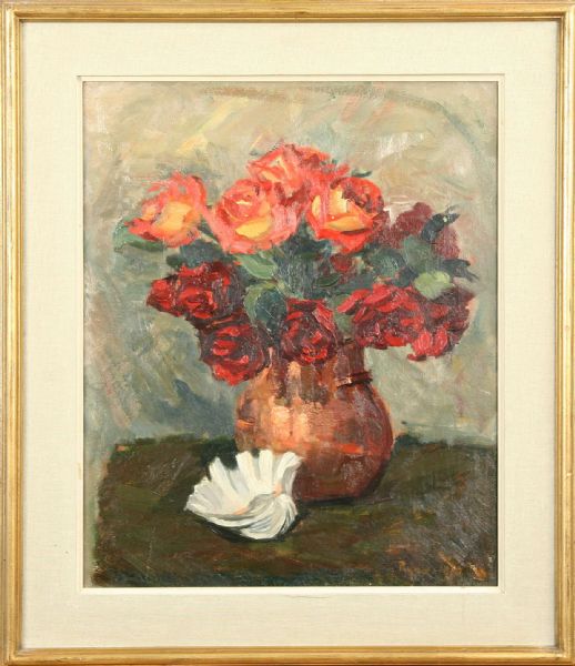Stilleben med rosor och snäcka