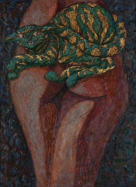 Femme au chat vert