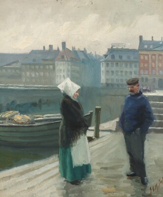 Fisherman and wife in conversation at Gl. Strand