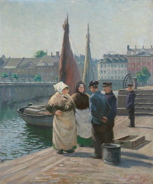 | Fishermen and their wives in conversation at Gl. Strand in Copenhagen. | |