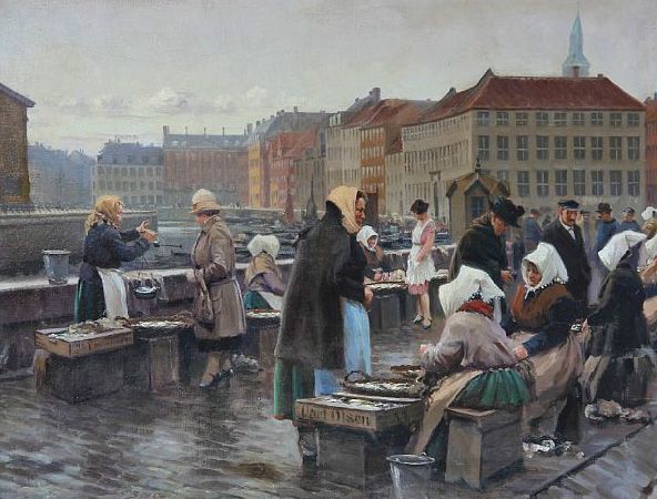 Fishermens' wife selling fish at Gl. Strand in Copenhagen