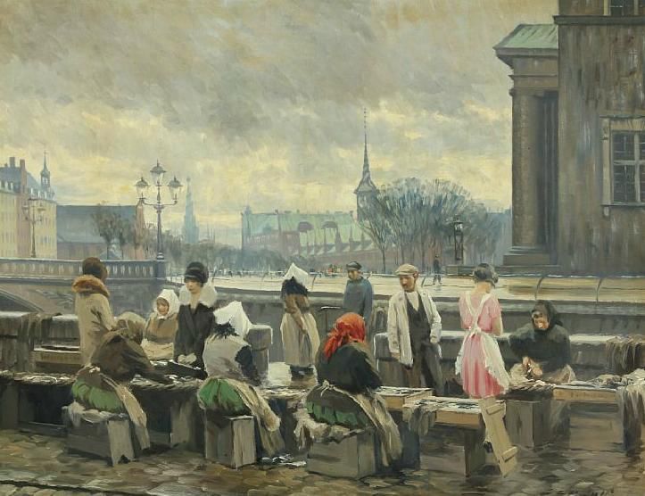 Fishermens' wives selling fish at Gl. Strand, Copenhagen.
