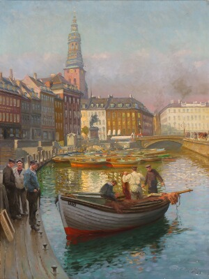 | View from Gl. Strand in Copenhagen with fishermen by the canal | |