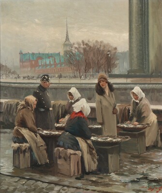 View from the fish market at Gammel Strand in Copenhagen with Børsen in the background