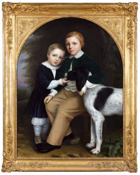 PORTRAITS DE DEUX ENFANTS ET LEUR CHIEN
