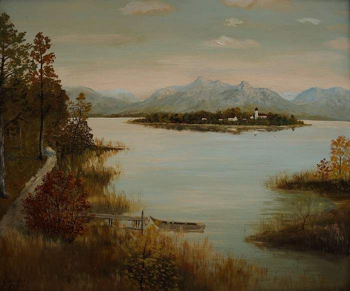 Blick auf den Chiemsee mit Fraueninsel