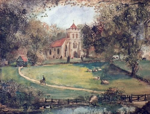Country church view, thought to be of Bekesbourne Church