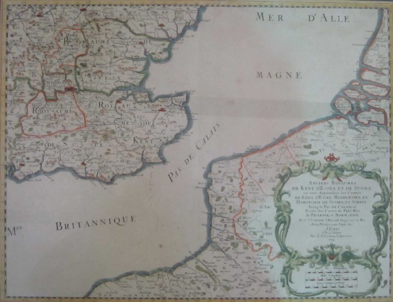 | A map depicting 17th century South East England and parts of France either side of the English Channel | |
