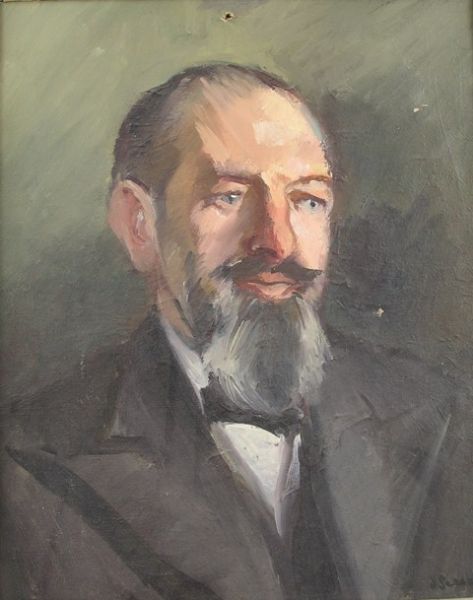 A head and shoulders portrait of a gentleman with receding hairline, moustache and short beard