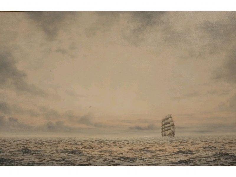 THREE-MASTED SHIP IN AN EMPTY SEA,