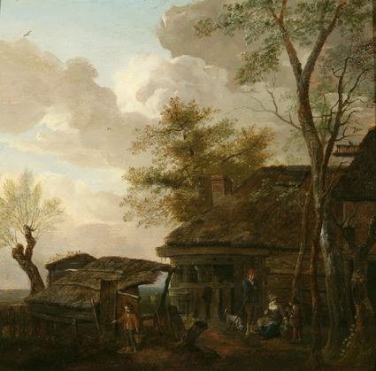 Cour de ferme avec paysans