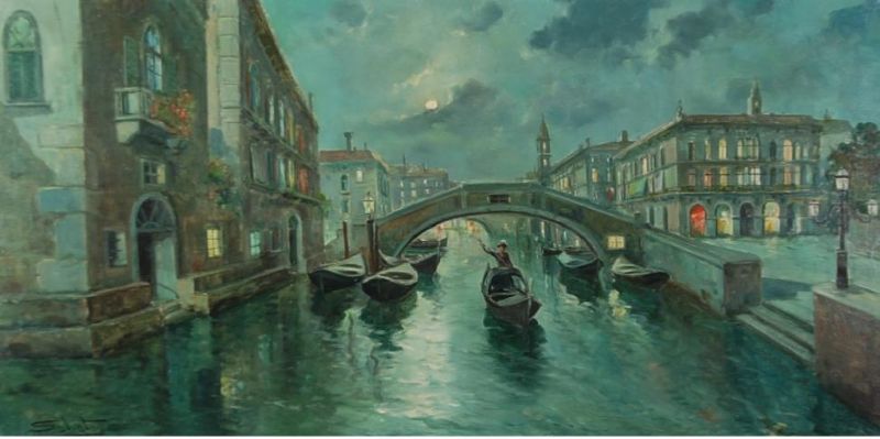 Venetian canal scene, late evening