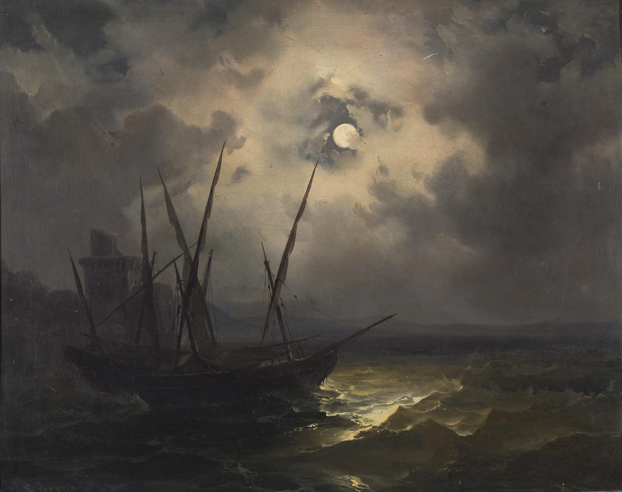 | Notturno con barca in mare in tempesta | |