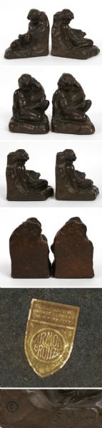| Pair figural bronze clad bookends in the form of a child reading | |