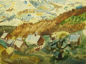 Alpine Swiss village landscape