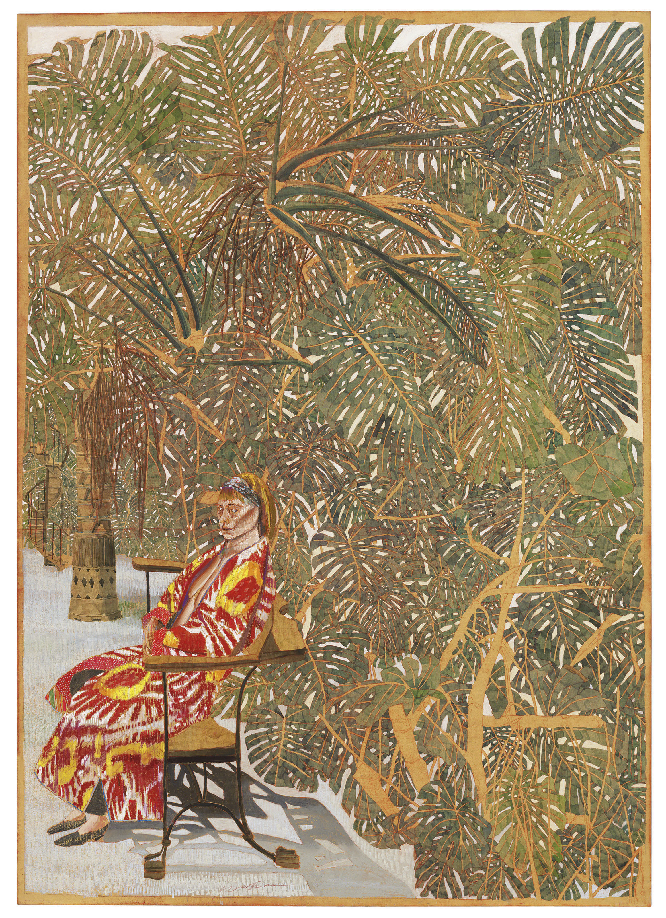 | Femme assise manteau rouge parmi les philodendrons (Seated Woman in Red Coat Among the Philodendrons) | |