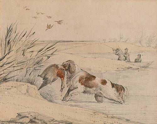 Duck shooting - a spaniel retrieving a mallard