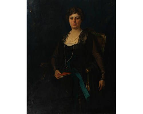 | Portrait of a lady, three quarter length, seated, a book in her lap | |