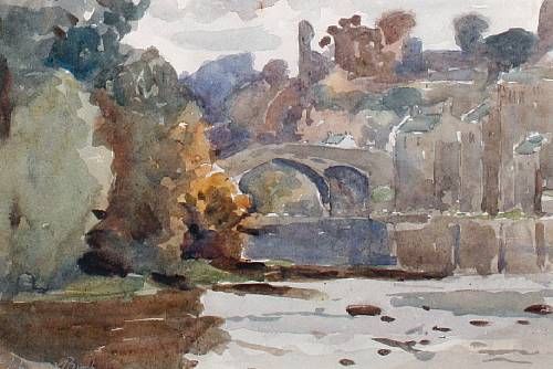 River scene with town beyond
