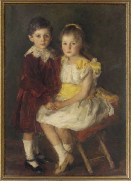 | Portrait of Hildegard and Eberhard Baelz, her seated in a white dress and yellow sash, him in a maroon velvet dress | |