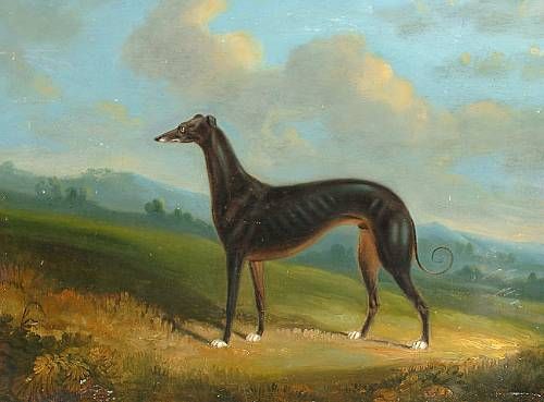 The greyhound 'Spectre'; Two greyhounds in a landscape
