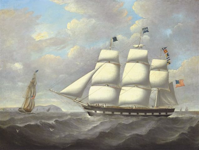 | The American merchantman Rajah Gopaul inbound for Liverpool and calling for a pilot off Holyhead Mountain, with another American | |