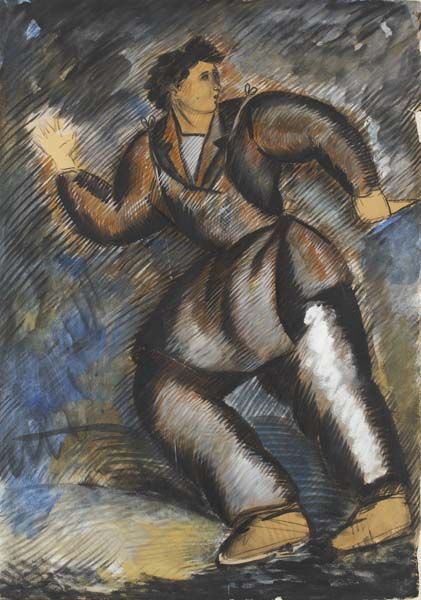 Charcoal gouache and watercolour on paper