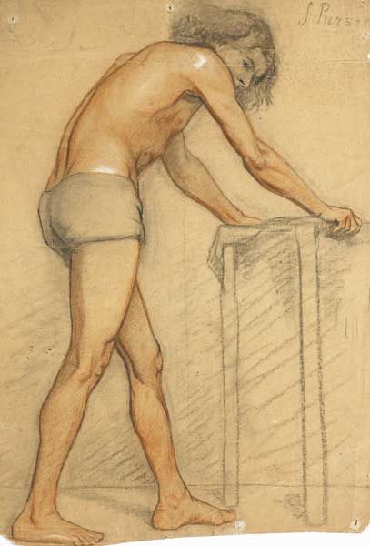 | Charcoal red and white chalk on buff coloured paper | |