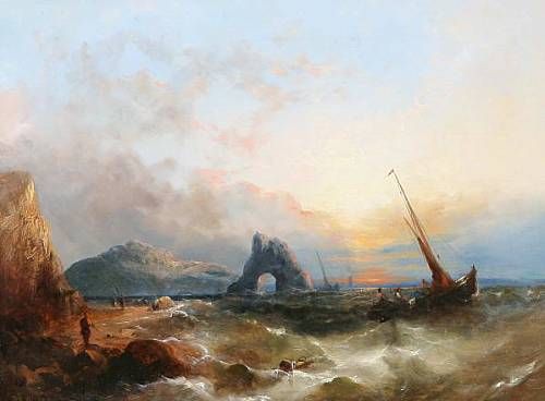 A coastal landscape at sunset