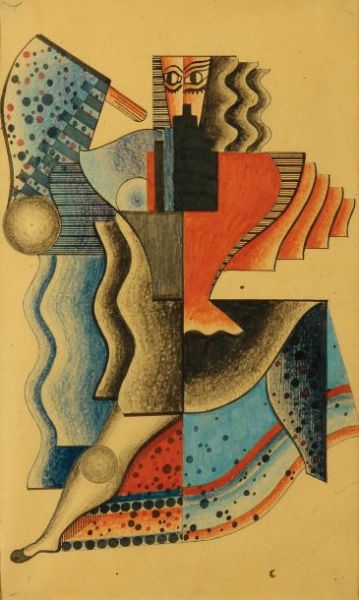 Crayon in colour, pencil, pastel, watercolor and pencil lead on paper