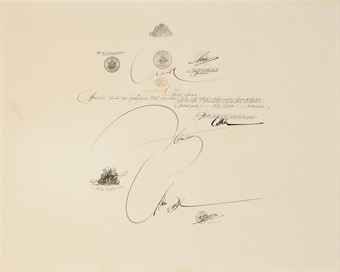 Pen ink and stamps on paper