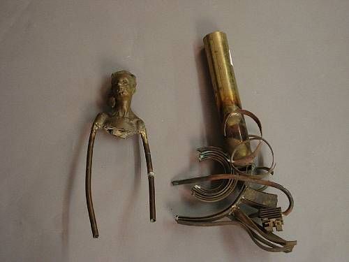 | Maquette study of a woman, head and shoulders, bronze, and another a metalwork abstract construction of cylindrical forms in bra | |