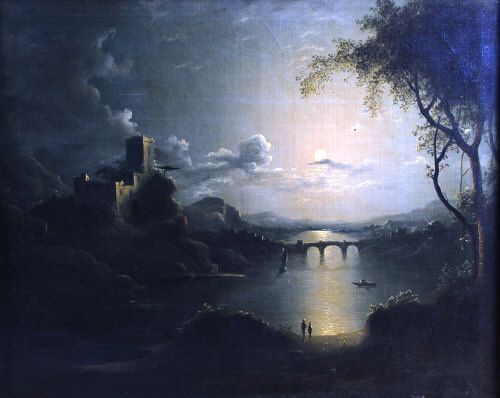 Arcadian river landscape by moonlight