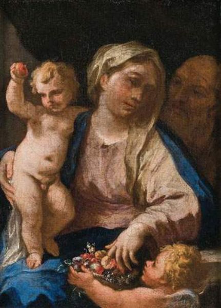 La Sainte Famille avec un Ange servant l'Enfant Jésus