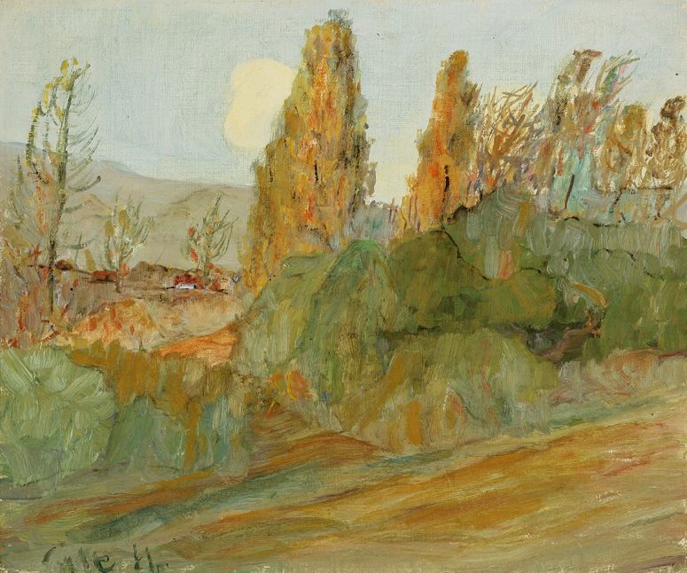 Oil on canvas laid to board