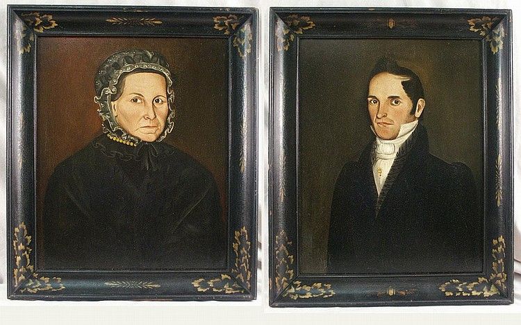 | TWO ANCESTRAL PORTRAITS OF HIRAM A. ADAMS and SALLY ADAMS, two | |