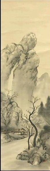 Ink and color on silk, Japanese hanging painting
