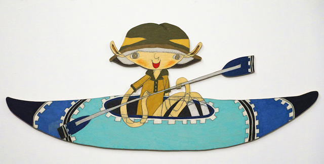 Drawing coloured pencil and pencil on cardboard, mounted on wood