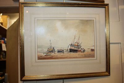 The Cable Layer, Greenwich; and fishing boats on a beach, 'On the Estuary'