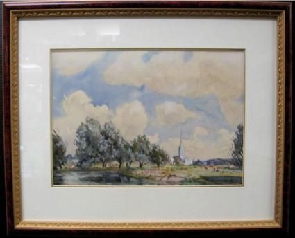 | DISTANT CATHEDRAL WITH GRAZING CATTLE IN FOREGROUND | |