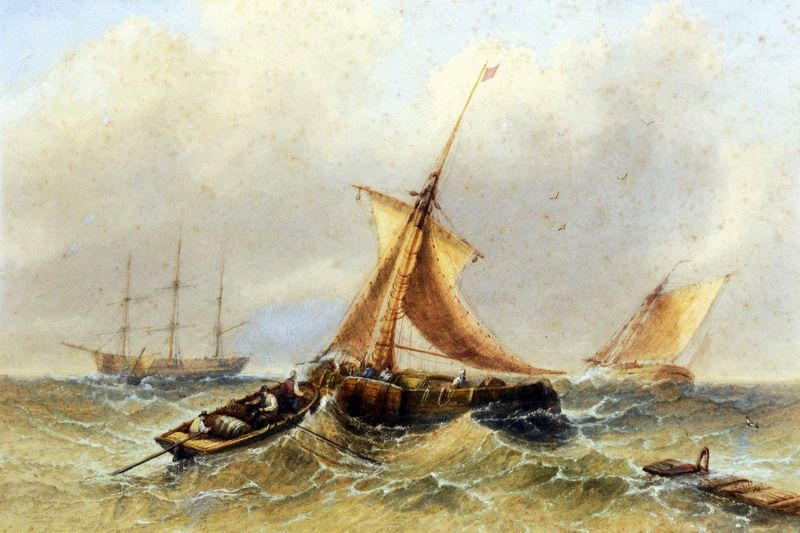 | Stormy seascapes with sailing vessels in a heavy swell | |